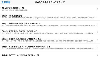 「そもそも、FXってなあに?」という方にも、このアプリを使えば親切に説明が載っています。