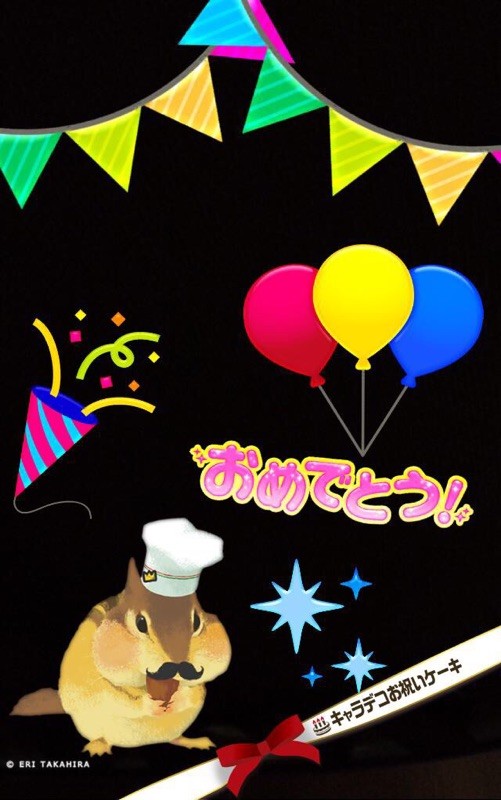 この画像を読み込めば、クラッカーが鳴る動画音声が再生された後、上記の通りにリスと一緒に記念撮影ができます。