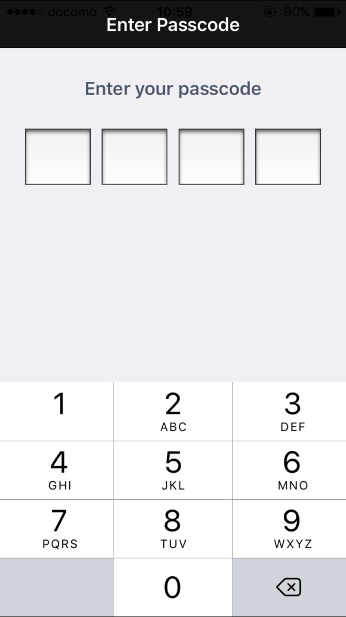 アプリを開くと、「Enter your passcode」と書いてありました。そこに自分で決めた数字4桁の暗証番号の入力をします。もう一度確認があるので、再度暗証番号を入力しました。