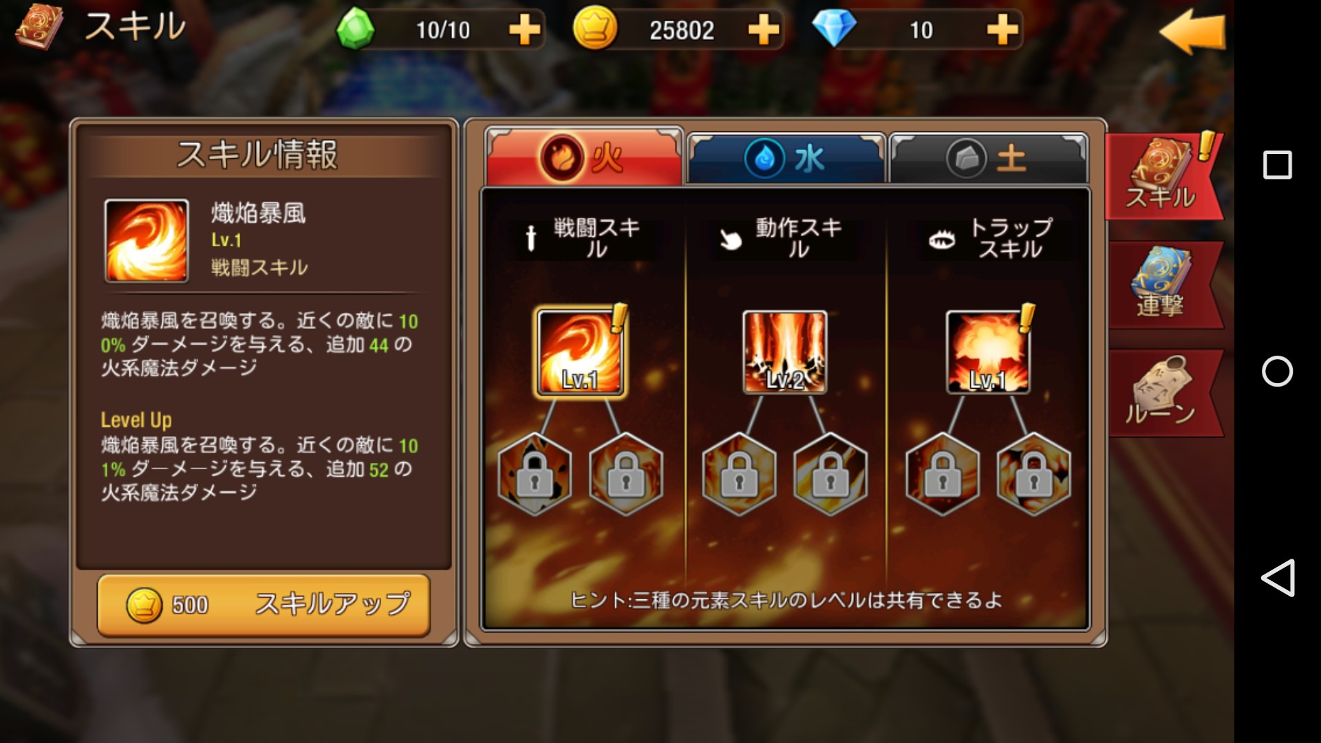 タップするだけのものだったり、発動場所を指定したり、なぞったライン上に発動するものがあります。効果も単純にダメージのものもあれば、継続ダメージを与えるものだったり、敵の動きを止めたりするものなどそれぞれです。