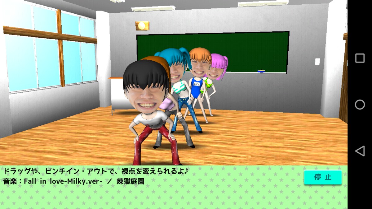6.音楽が流れてダンスがはじまる!止めたくなったら「停止」ボタンを押す