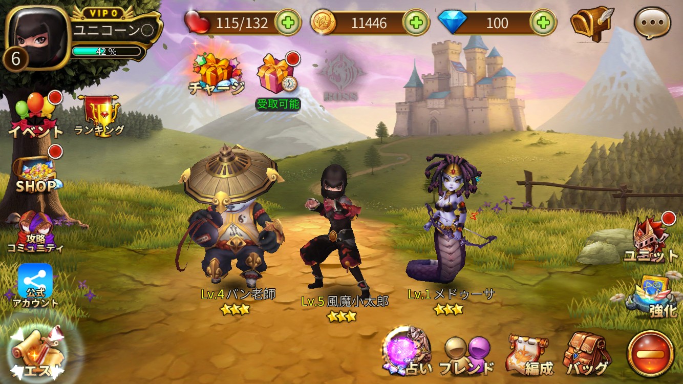 クエストを進める際にキャラクターのレベルが低いとクリアをするのも厳しい場面も出てきます。なのでクエストをクリアして経験値を獲得したり、ホーム画面にある強化でキャラクターを強くしてレベルアップをさせていきましょう。レベルがアップすると戦闘力が上がるのでクエストも有利にクリアすることができます。また、より強力なキャラクターを揃えるなら「占い」でキャラクターを引き当て強いキャラクターをどんどん集めていきましょう。どのキャラクターが出るかは引いてみてのお楽しみです。その人の引きや運も兼ね備えながら強いキャラクターを集める楽しみがあるのも魅力です。