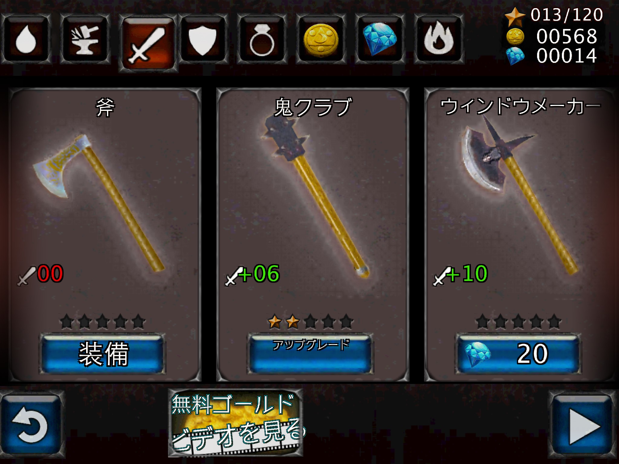 以上、「デーモン&ダンジョン」の紹介でした。最初は大したことなかったダメージもだんだん痛くなってきて、強化なしでは進めません。防具をとりあえず強化したところで、