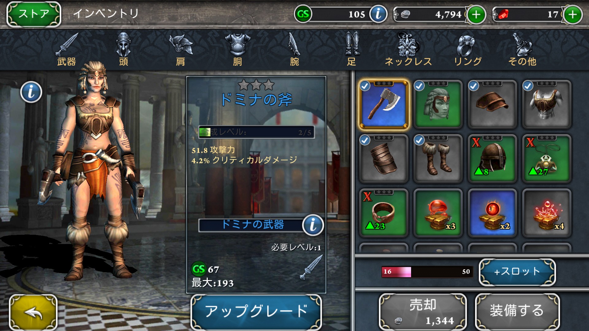 女バーバリアンは手斧を投げて遠距離から攻撃するタイプなのでリスクは少なく、上手くやればノーダメージで戦闘を終えることが可能です。しかし敵に近づかれると処理が追いつかなくなる弱点があります。