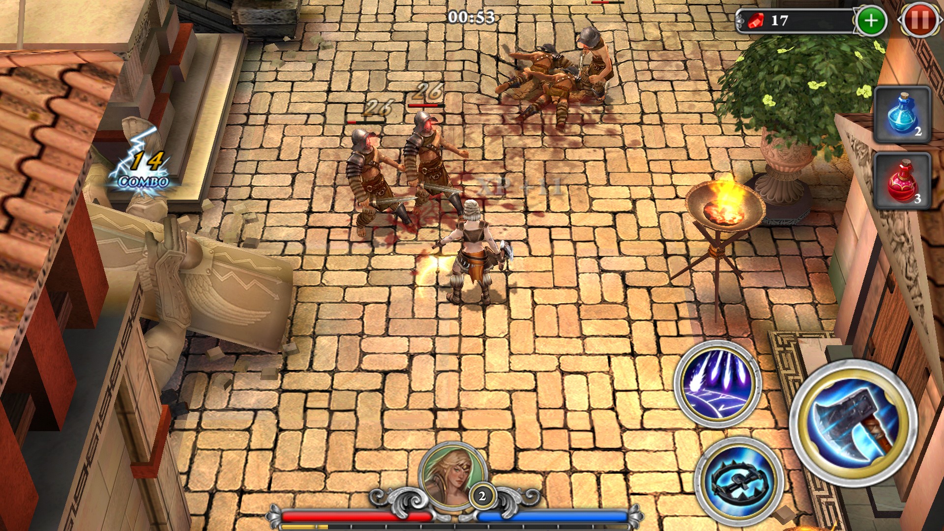 キャラクターによって攻撃方法やスキルはが異なっており、剣闘士は近づいて攻撃するのに対し、バーバリアンや魔術師は遠くからの攻撃です。遠距離タイプはダメージを負うリスクが少ない分、