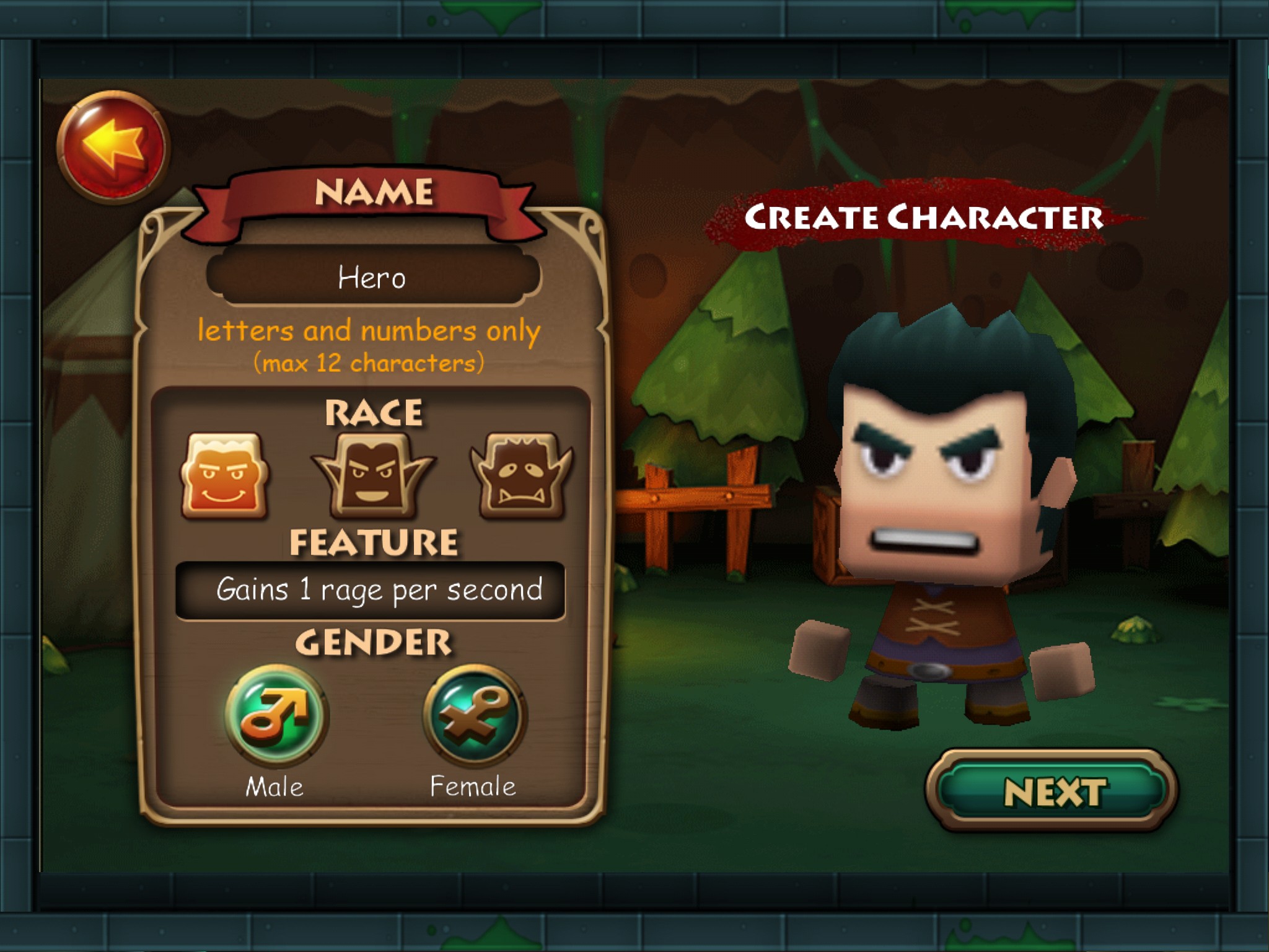 「モンスター・クラッシュ」は過去に一度倒されたブラックドラゴンが再度世界を破滅させようとしており、それを阻止するためプレイヤーが招集されたというお話です。最初はキャラメイクから始めましょう。