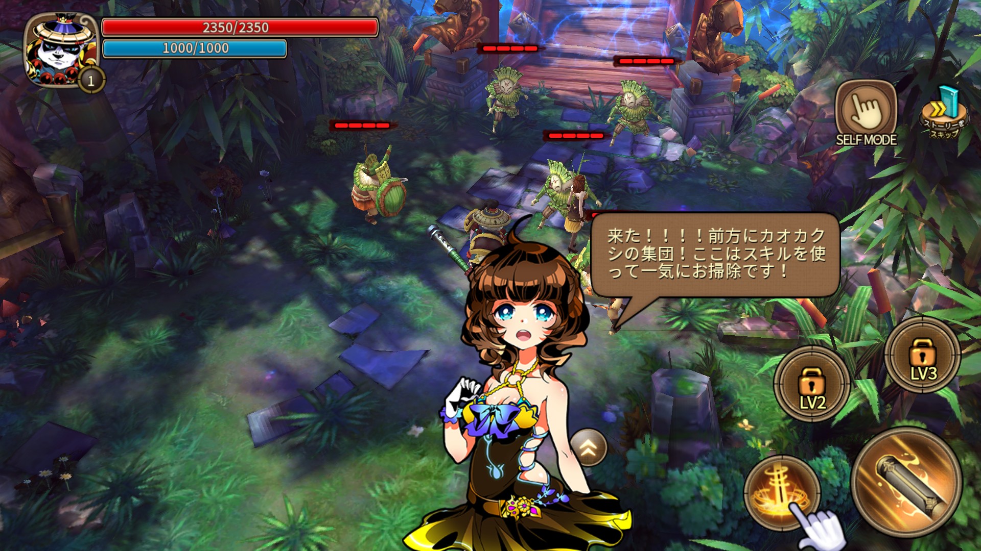 ほぼ放置でもいけるでしょう。ただしボス級の敵は強力な範囲攻撃を使ってくることに注意してください。該当範囲は地面に赤く示されていますから手動で操作して範囲外に逃げましょう。