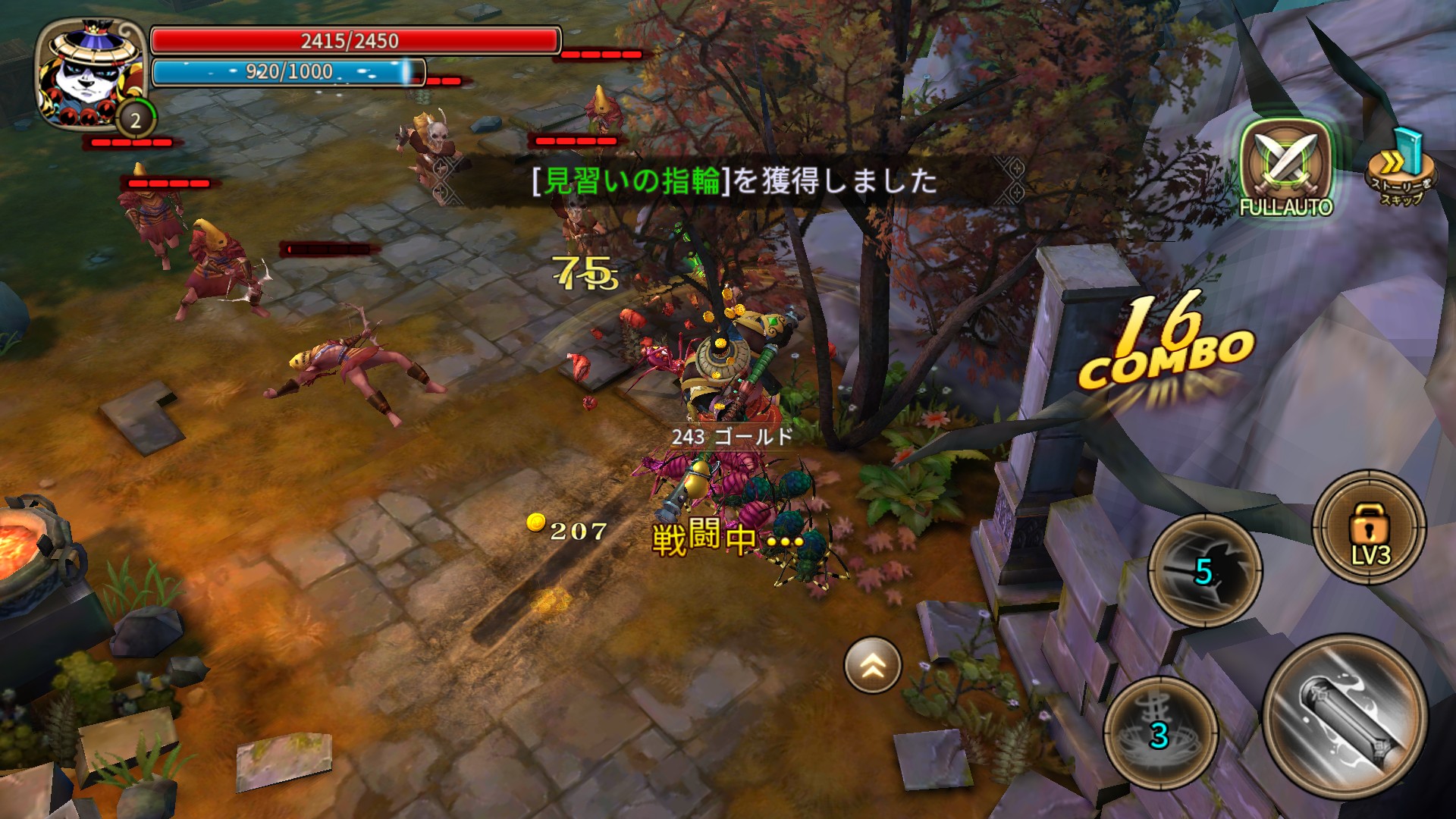戦闘も手動の他に通常攻撃のみを行うセミオートと、スキルも自動で使ってくれるフルオートの二種類があり、仕事が忙しい人も片手間で遊べる嬉しい仕様です。序盤は報酬の装備もあってサクサク進めますから、
