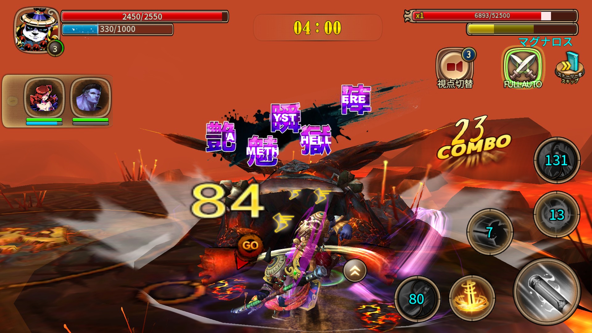 キャラクターはレベルが上がるとスキルを覚えて、そこから強化することで威力が上昇していきます。敵の数もそれなりに多く攻撃の手数も速いので気持ち良いアクションを楽しめるでしょう。