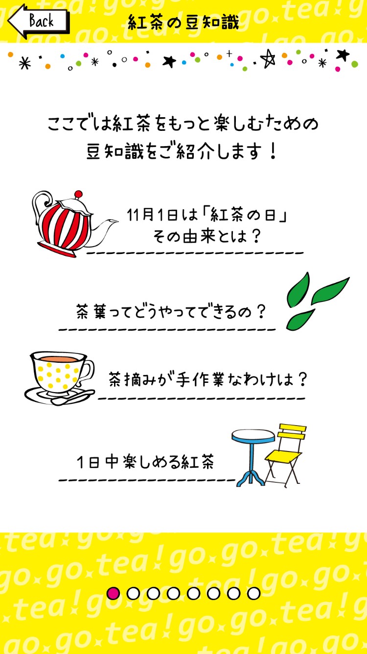 キリンビバレッジの午後の紅茶ページにリンクしているので、午後の紅茶の詳細を見ることができます。新商品の情報やキャンペーンはこちらからチェックできますよ。また、紅茶に合う料理のレシピを紹介していたりします。こちらのアプリよりも、さらに詳しく紅茶について書かれているので、勉強するのもおすすめです。
