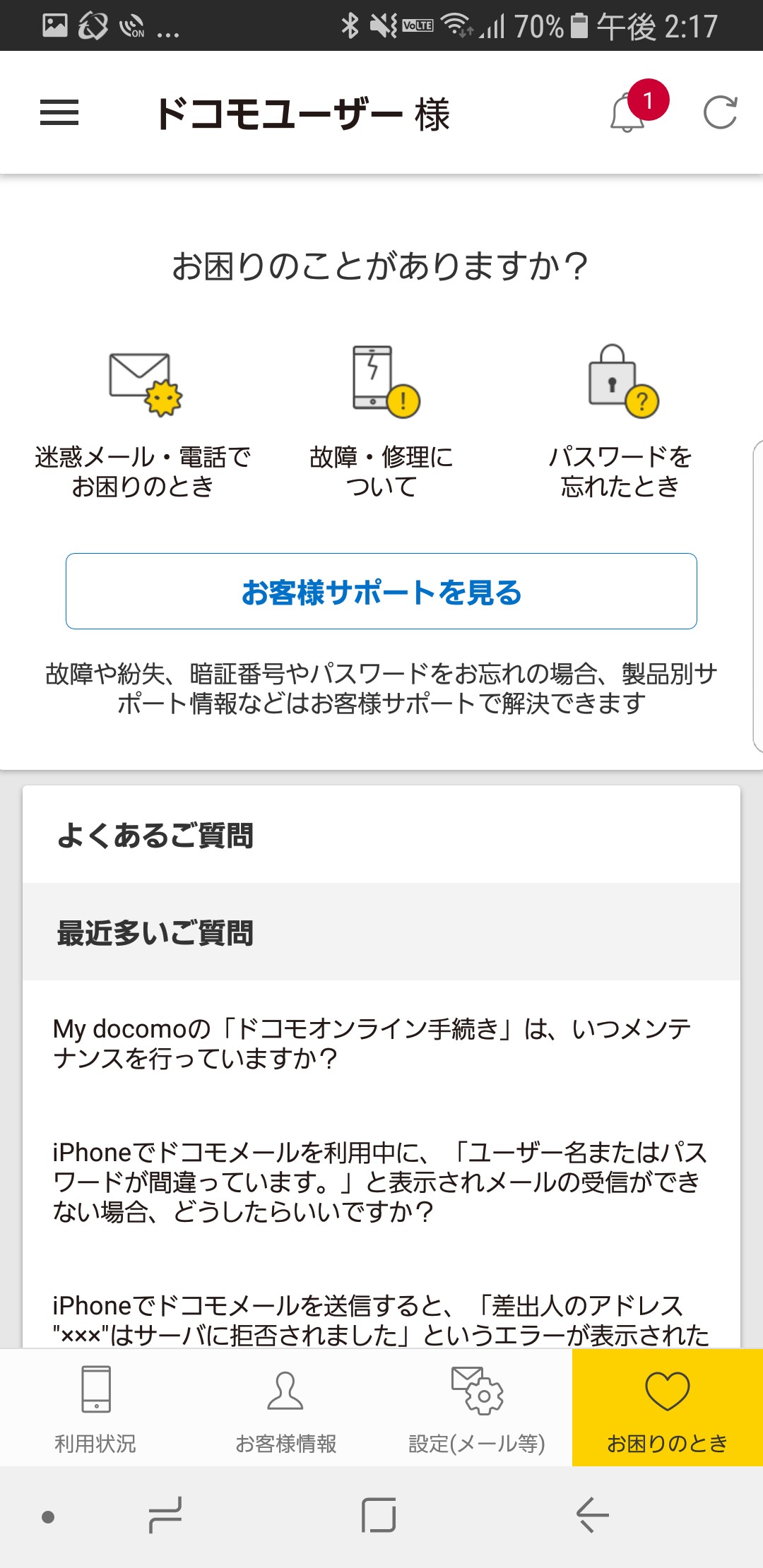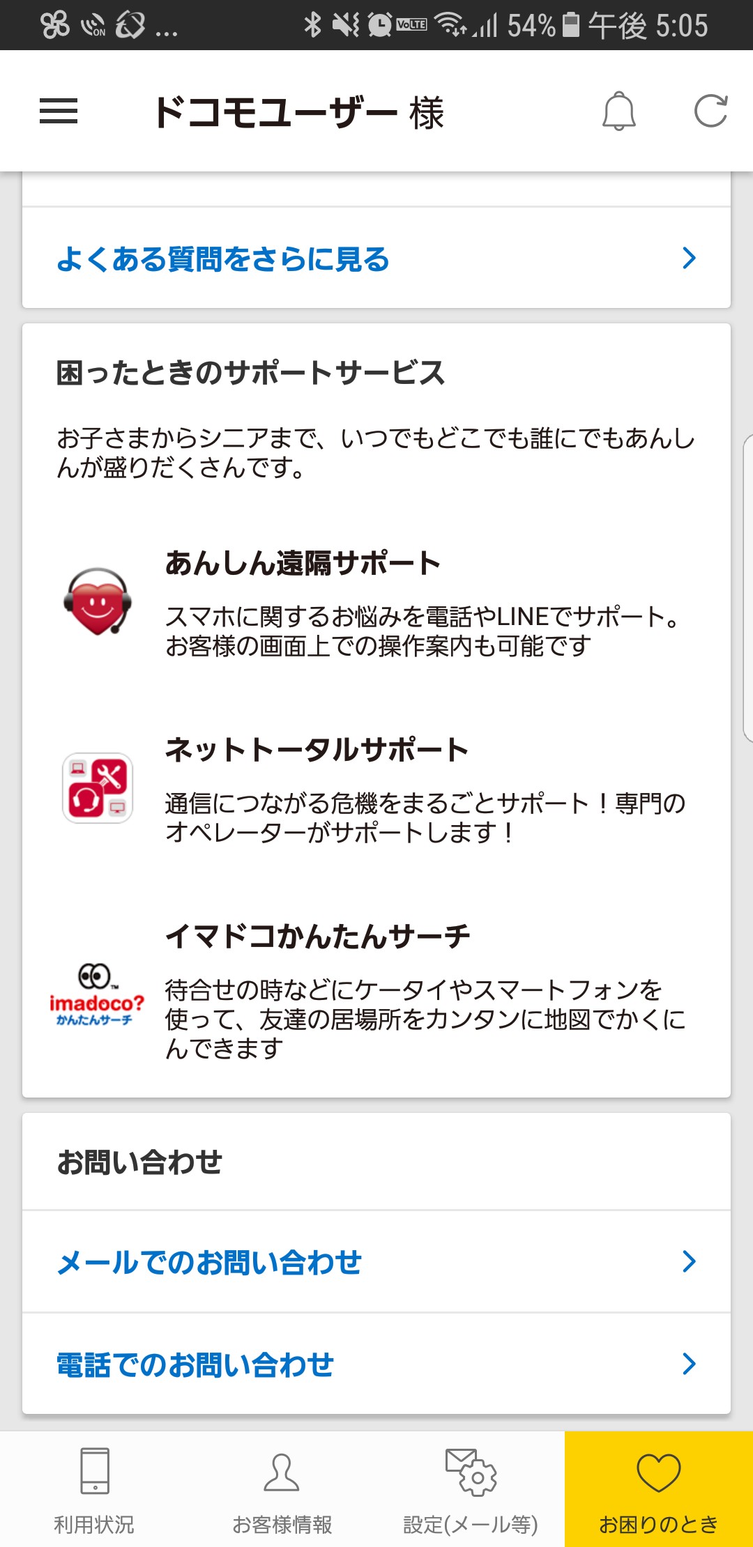 よくある質問やFAQがあるので早期解決に導いてくれます。アプリ内で分からないことは公式サイトやサポートセンターへ接続できるようになっているのでわざわざ再検索したり番号を調べたりという手間もありません。