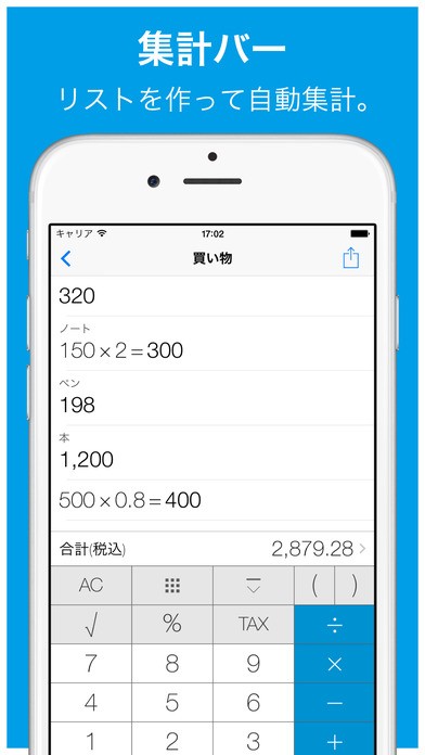 『計算機+ 式が見える電卓 Pro』は、「集計バー」によってアプリが集計結果を出してくれるので、買い物や光熱費など、さまざまな支出の計算をするときにはとっても便利。