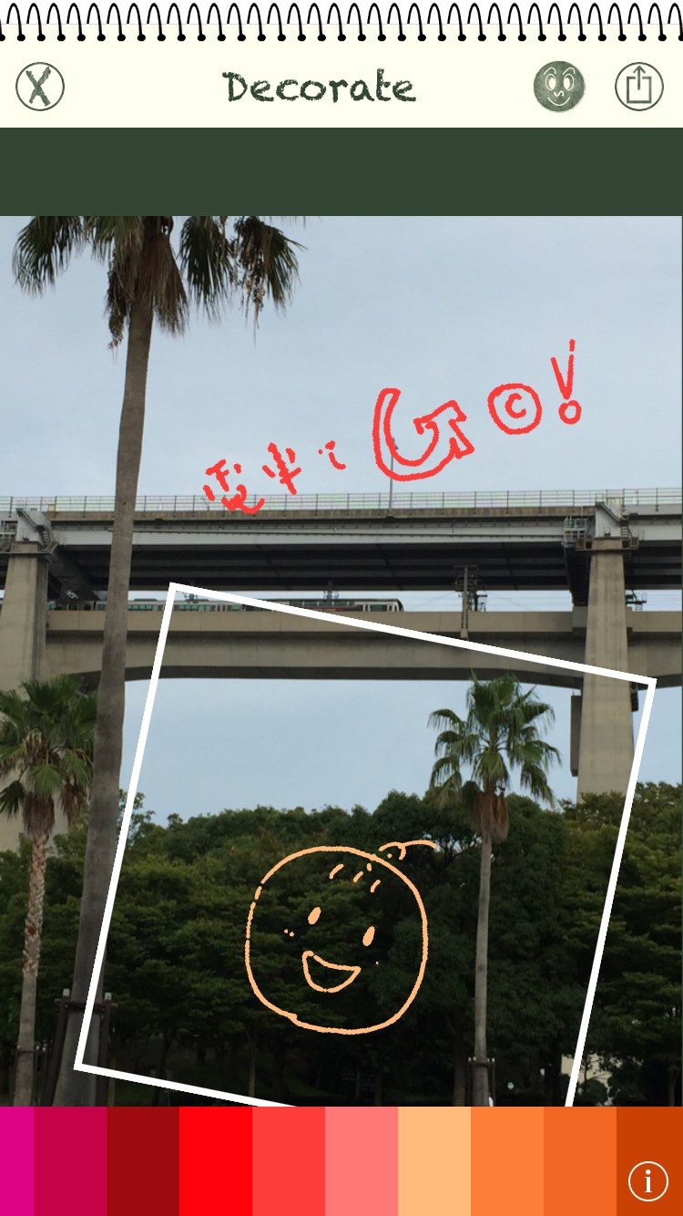 ことです。手書きのスタンプは独特の雰囲気で味があり、見ていて面白いですよね。自作のスタンプなら、思い通りの絵や飾り文字のスタンプで写真を飾ることができるので、写真に合うスタンプを探したり、しっくりこないスタンプを使うストレスがなくなります。インスタグラムやFacebookなど、SNSで写真を頻繁に使う人は、他の人と差別化した写真をアップすることができるようになりますよ!