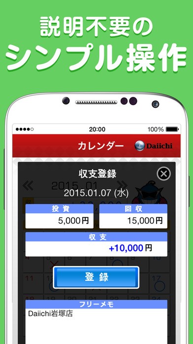 「Daiichiパチンコ・パチスロ収支帳~使いやすさNo.1の収支帳アプリ~」 - シンプルを極めた簡単収支帳!
