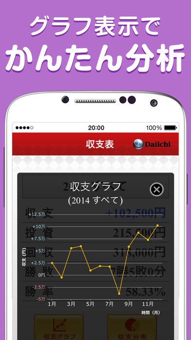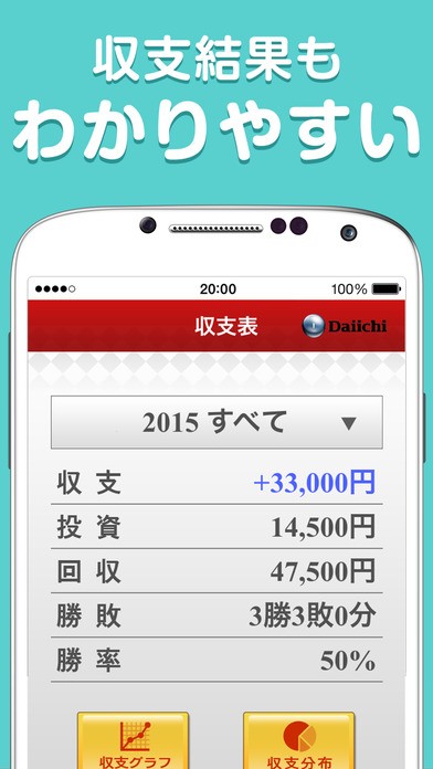 収支をグラフ化してくれたり、勝率を計算してくれたりして細かいお金の動きを簡単に確認できるようにしてくれるので、トータルで勝っているのか負けているのかを簡単にチェックできますよ。