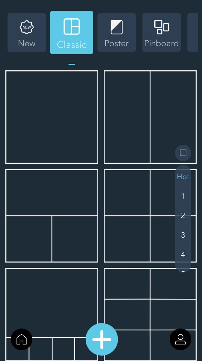 2.写真をコラージュしたい場合はcollageボタンをタップし、ジャンルに分けられたフレームを選択します