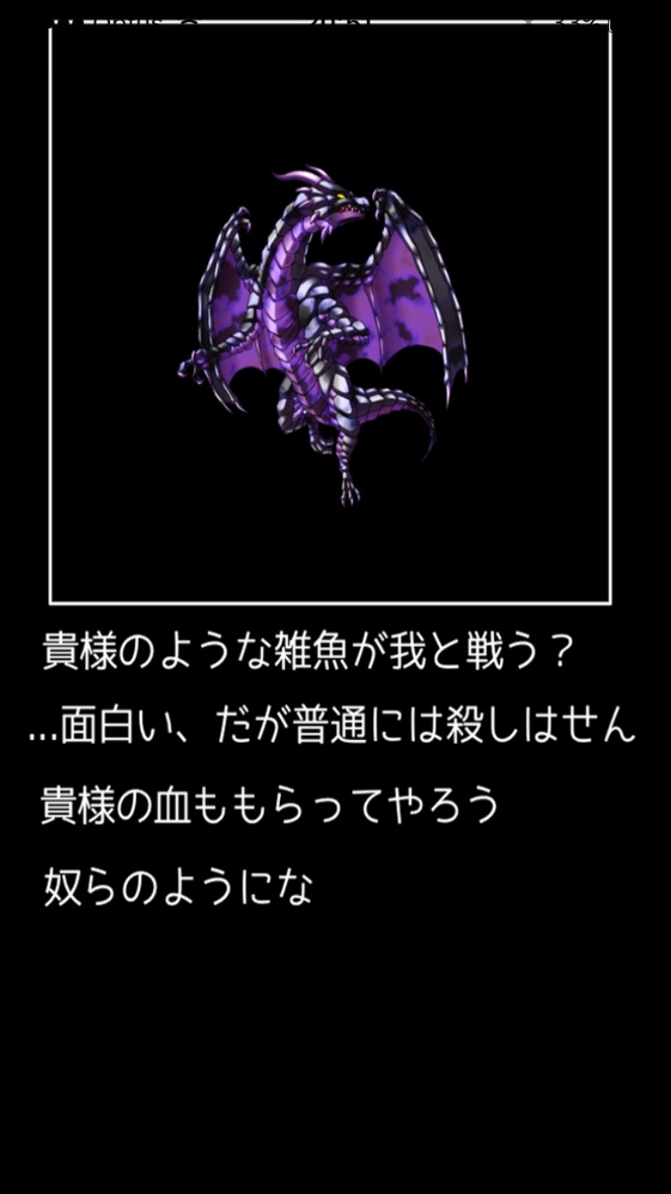 「いざ魔王討伐へ」をタップすると魔王との戦いが早速はじまりす。戦い方は同じで「たたかう」で攻撃です。最初から魔王へ逆襲をしに行くことができますが、自分の攻撃は全く効かず、魔王から一発の攻撃で即死します。