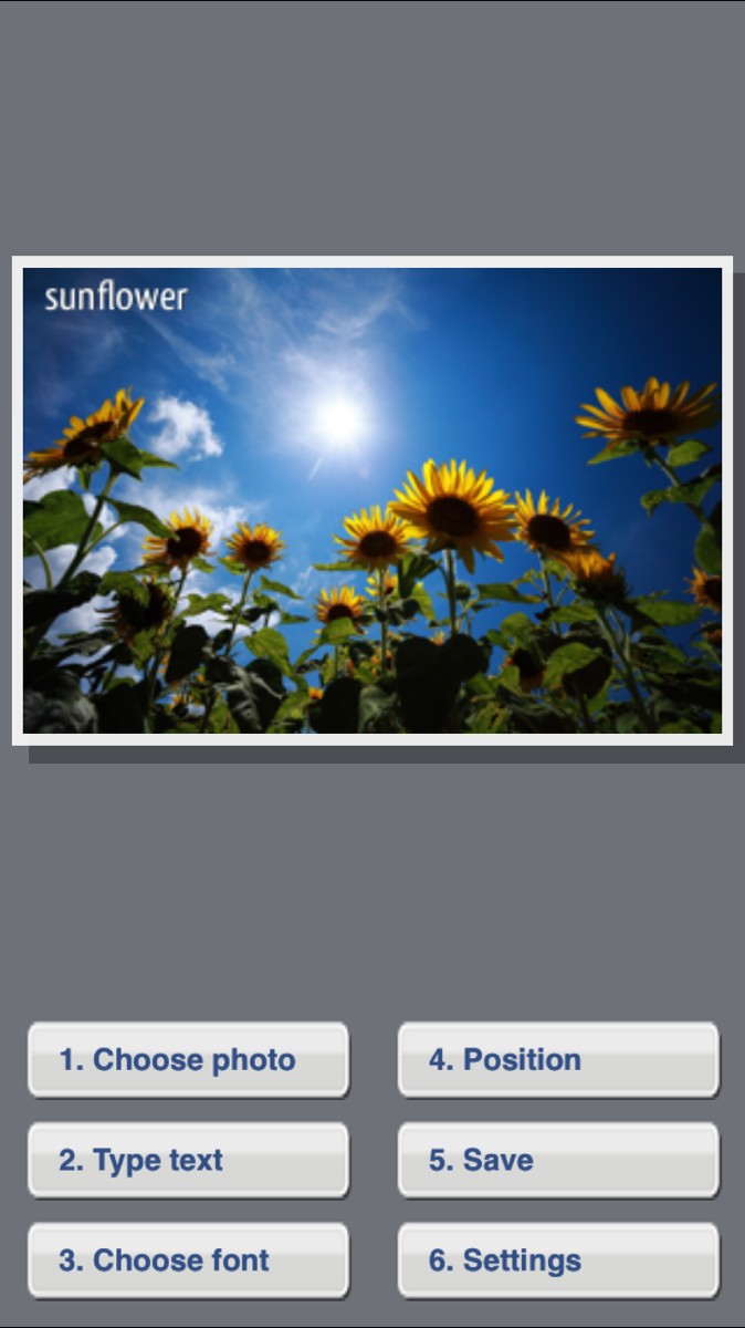 3.Choose font 20種類の個性的なフォントから選択可能です。フォントサイズやカラーももちろん選択できます。フォントは無料バージョンだと4種類です。もっと他のフォントが使用したい場合は有料バージョンを購入しましょう。