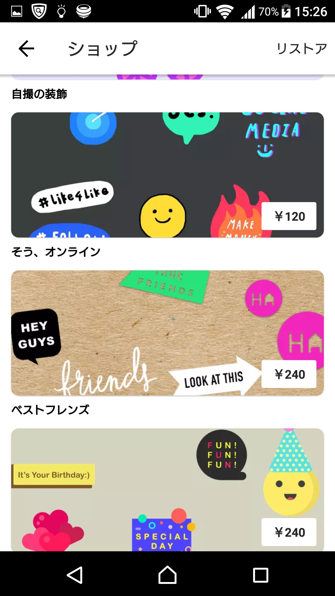 「InShot」には先ほど紹介した無料素材のほかに、有料の素材もたくさんあります。