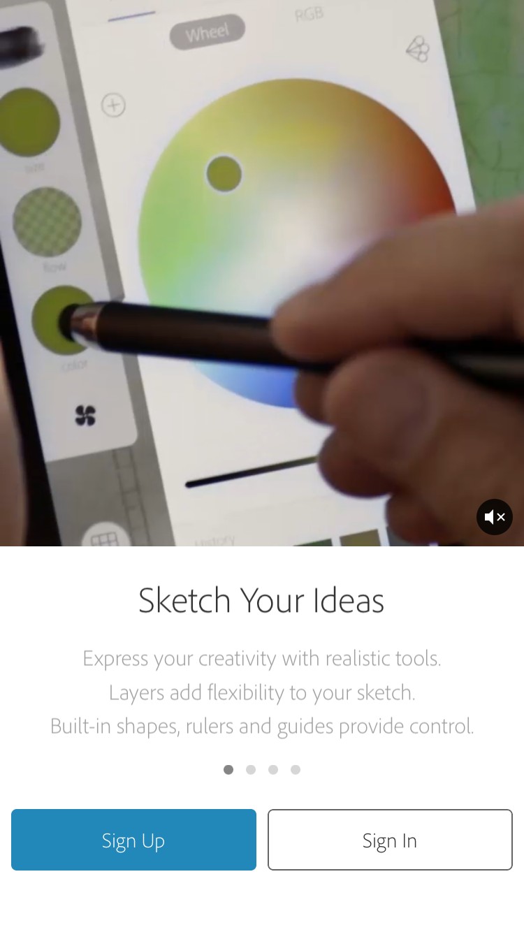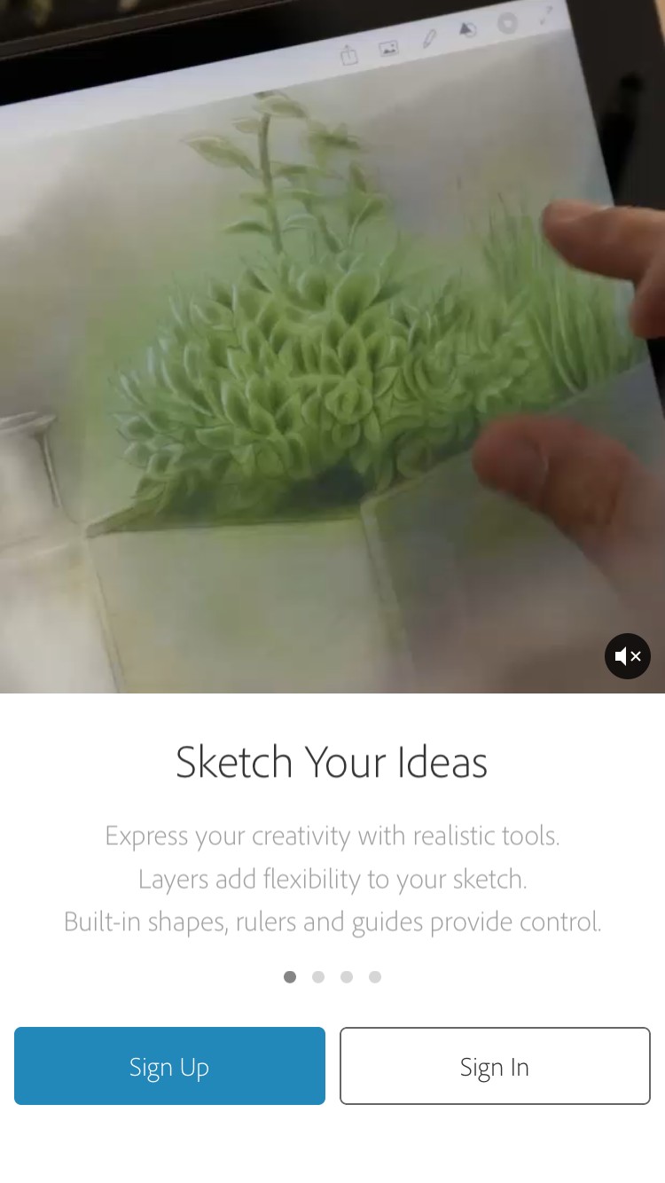 アプリをダウンロード後開くと、「Addobe Photoshop Sketch」がどんなアプリなのか簡単な動画と一緒に紹介されます。