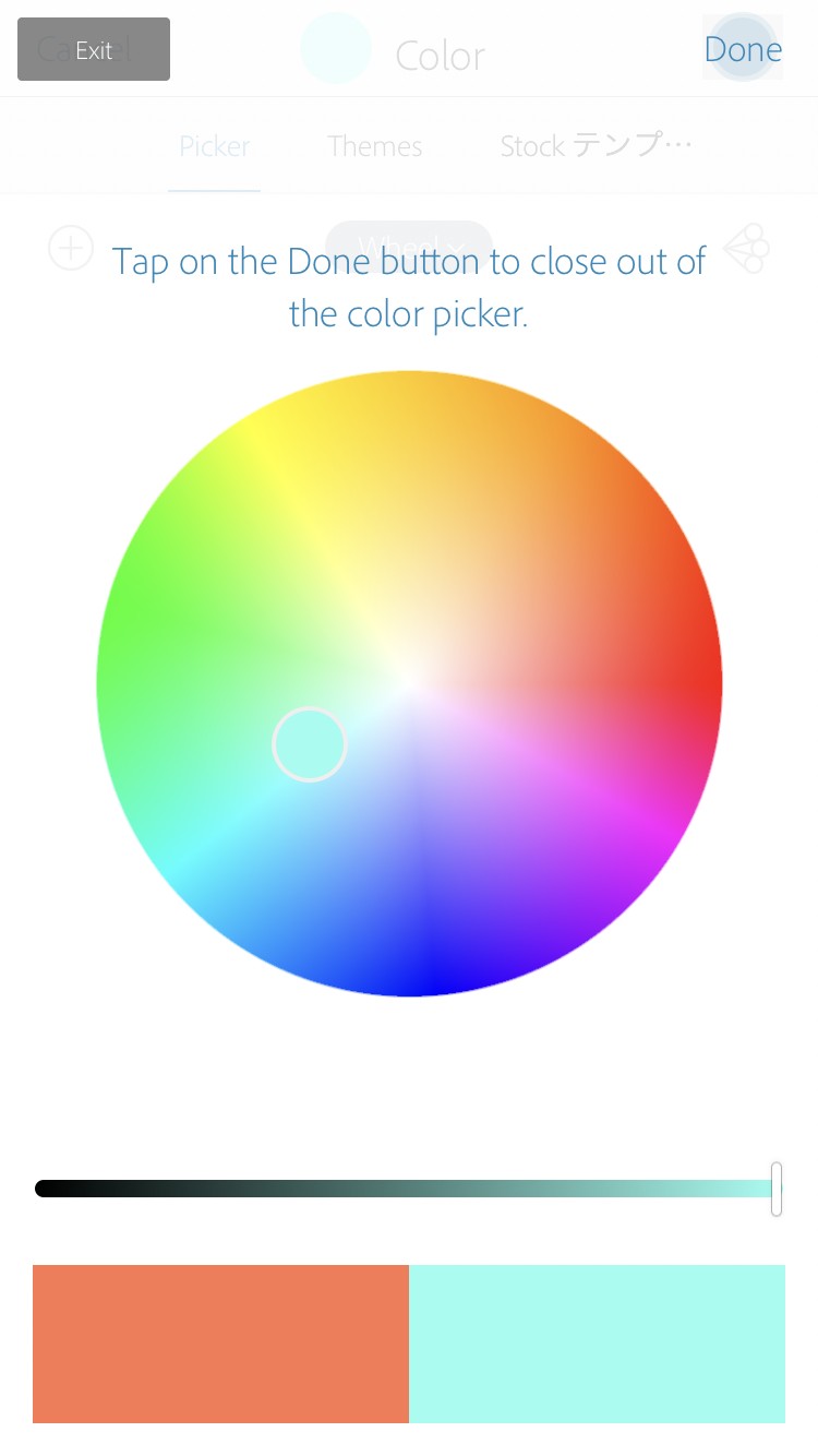 スマホだからといってカラー選択が限られるわけではありません。カラーウィールで色を選択できるので、絵に色を塗るのに「Adobe Photoshop Sketch」は適したアプリです。
