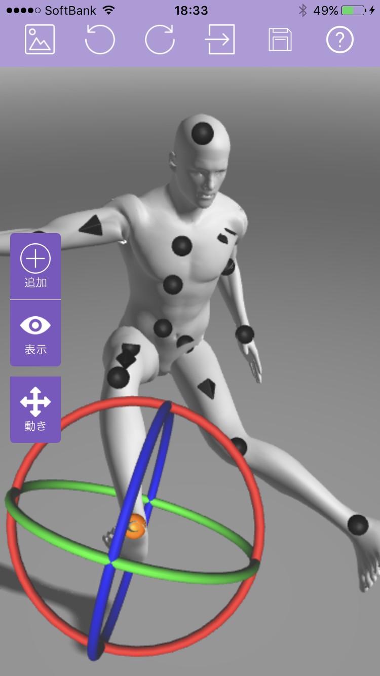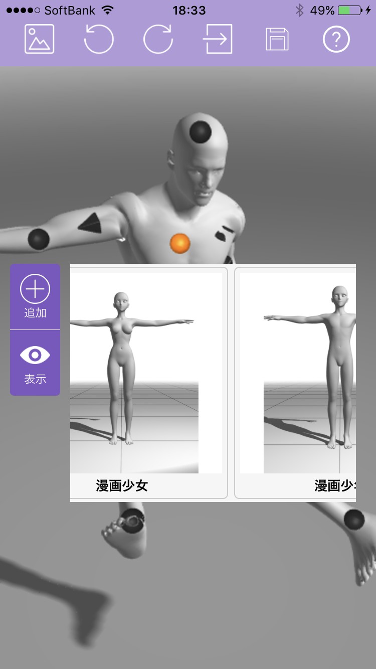 このアプリはスマートフォン上でモデルを表示することができ、各関節などをタップしながら移動することで自分好みのポーズを作ることができます。
