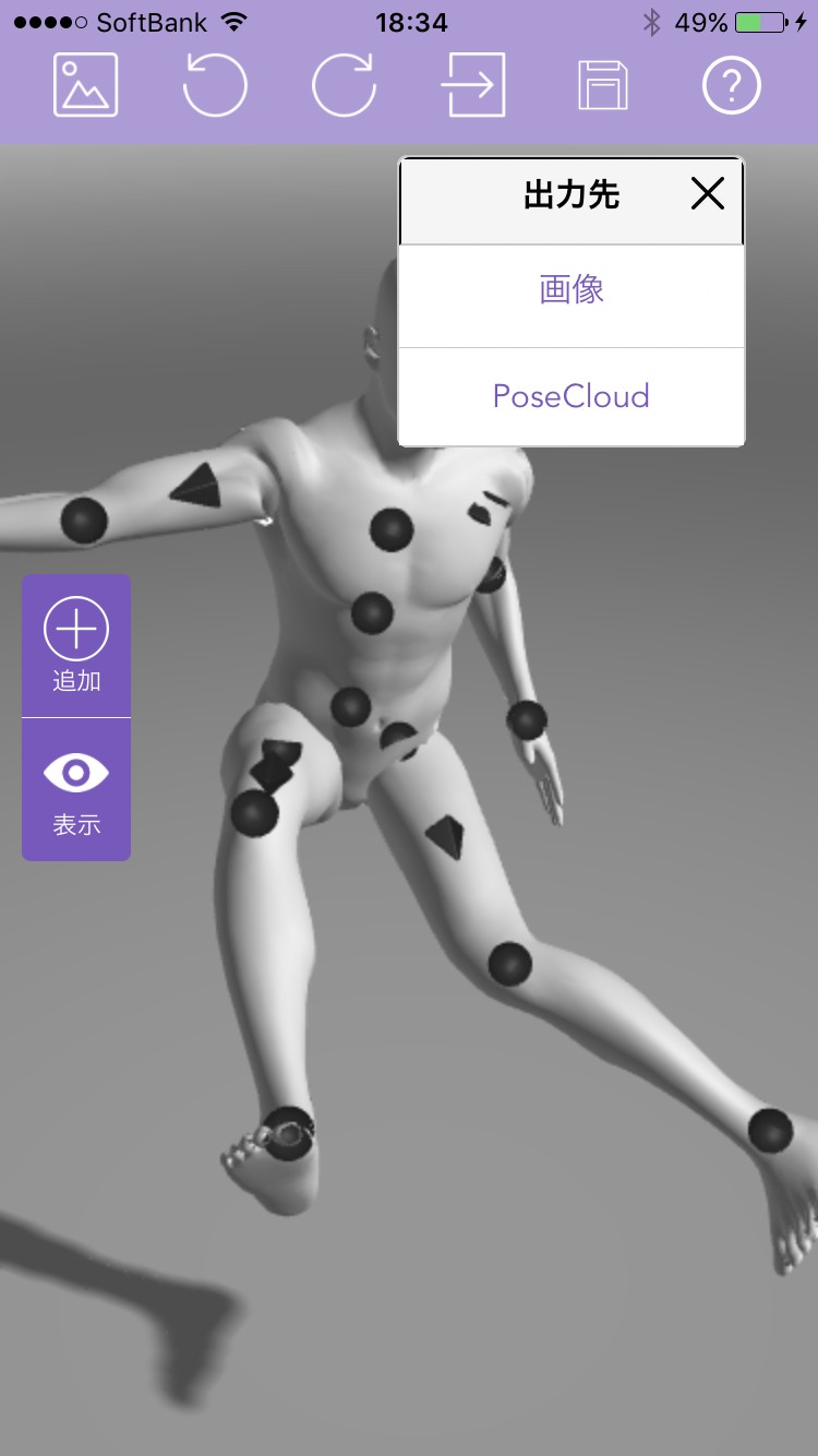 つまりスマートフォン版モデル人形というわけですね!また、スマートフォン上でできるという利点を生かしポーズの保存や他の方が作ったポーズをダウンロード(有料のようです)することができます!