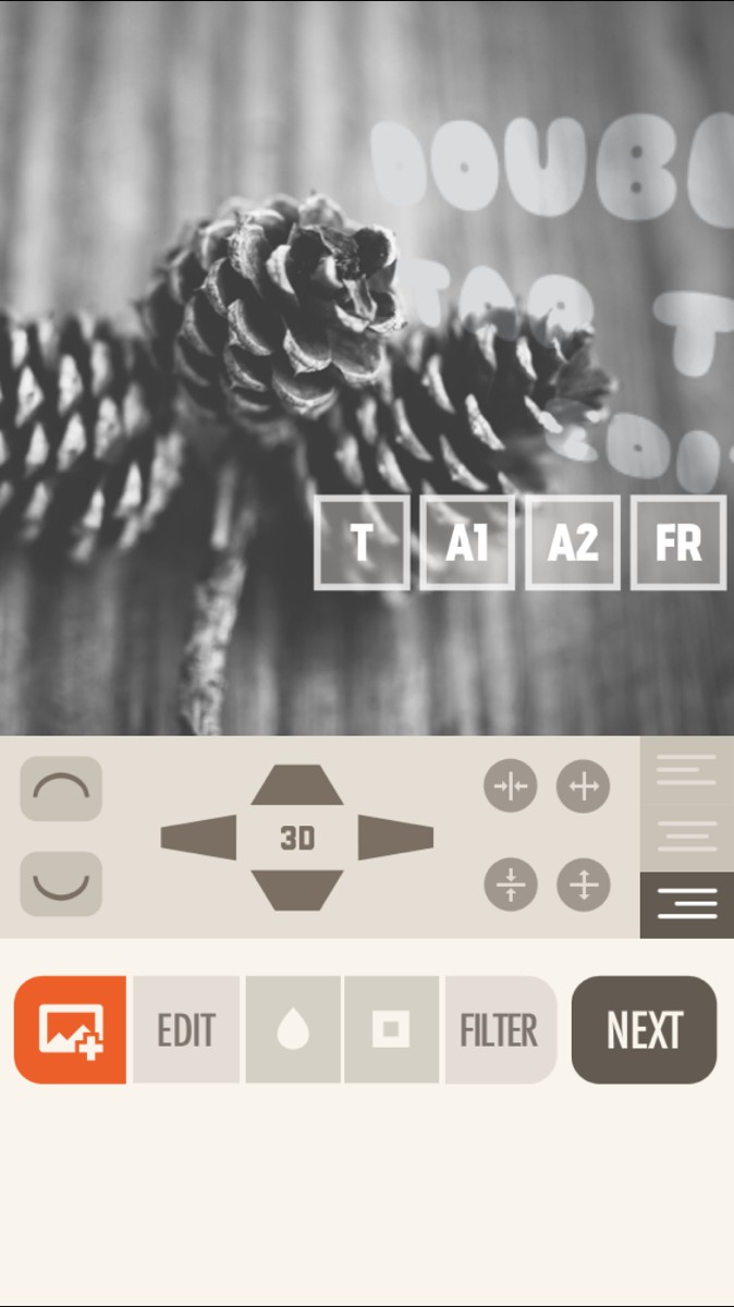 6、「T」の2つ上にある三本の線が書かれたマークをタップすると、入力したテキストを3Dに調整できます。
