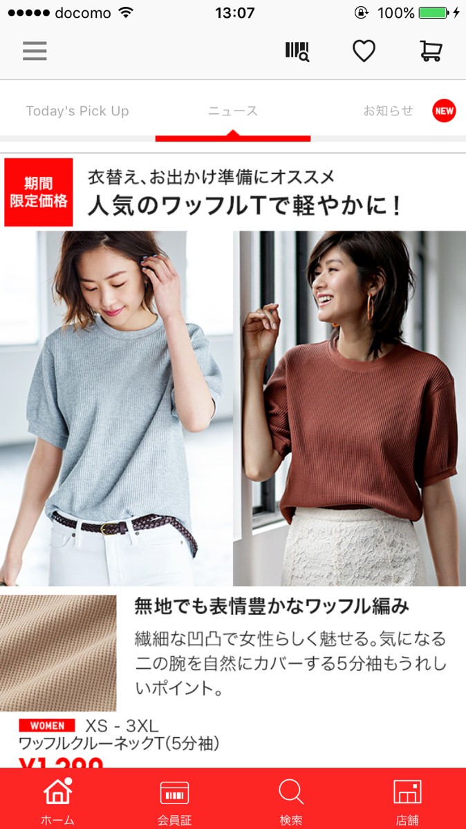 - ユニクロのアイテムが見られる!アプリで今週のチラシや新作アイテムなどをチェックできる。