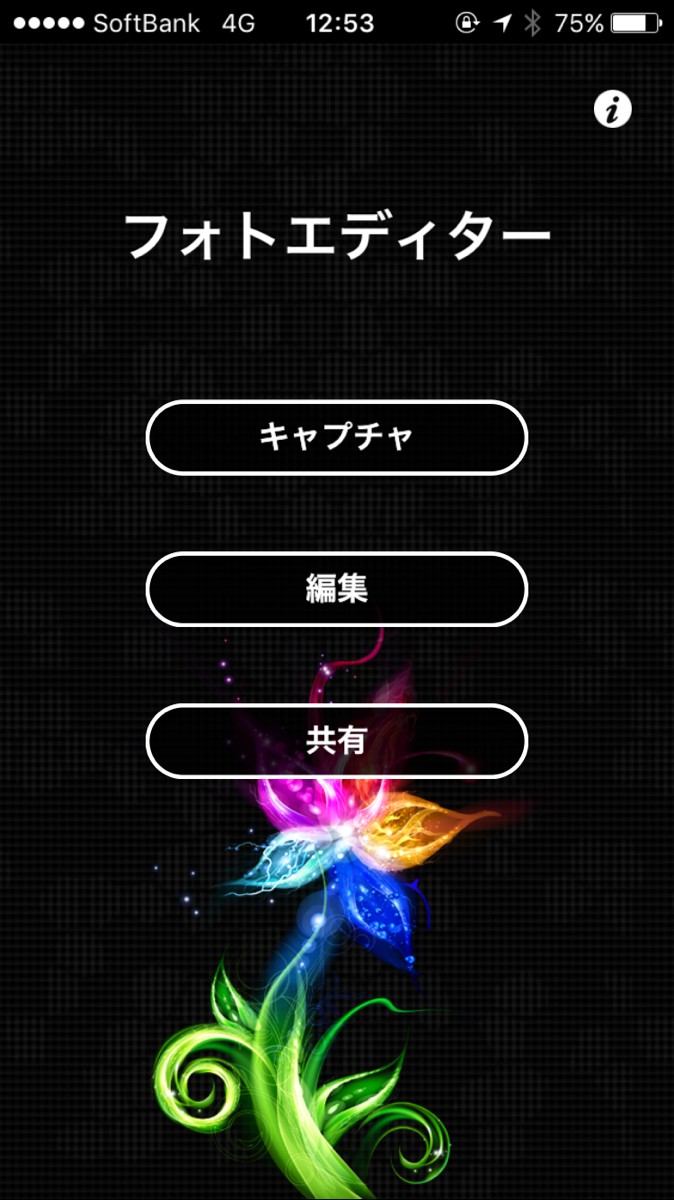 2、「キャプチャ」画面をタップして加工する画像をその場で撮影するか、「編集」画面からカメラロールに移動して画像を選択する
