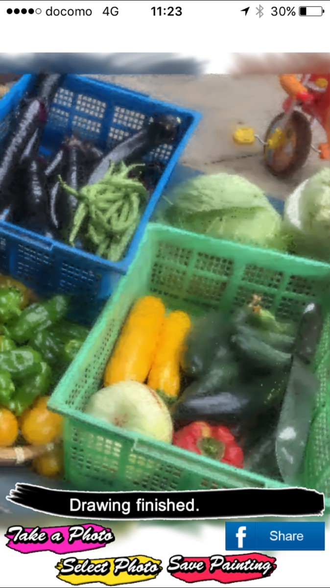 色々な色を重ねる過程を楽しみながら、どんな絵に仕上がるのだろうと待っている時間も楽しめます。完成した絵はカメラロールに保存したり、そのままFacebookにシェアすることもできますよ!
