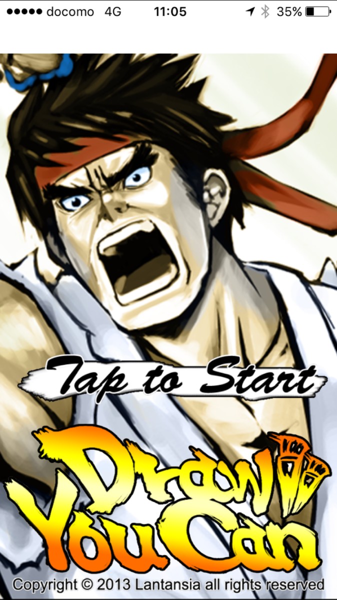 2.アプリを起動すると、カンフー漫画のような勢いのある男性のイラストが出迎えてくれます。
