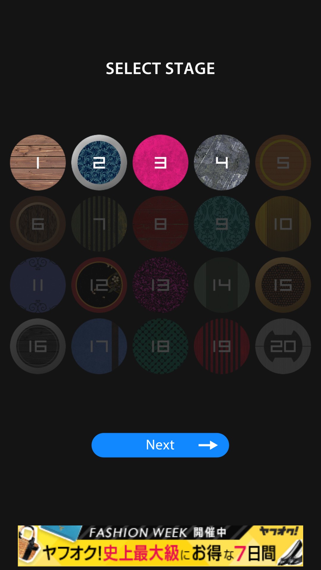 最初のステージでごく簡単なタップのみでクリアすることが出来ますが、先に進むにつれて難易度が上がっていきます。
