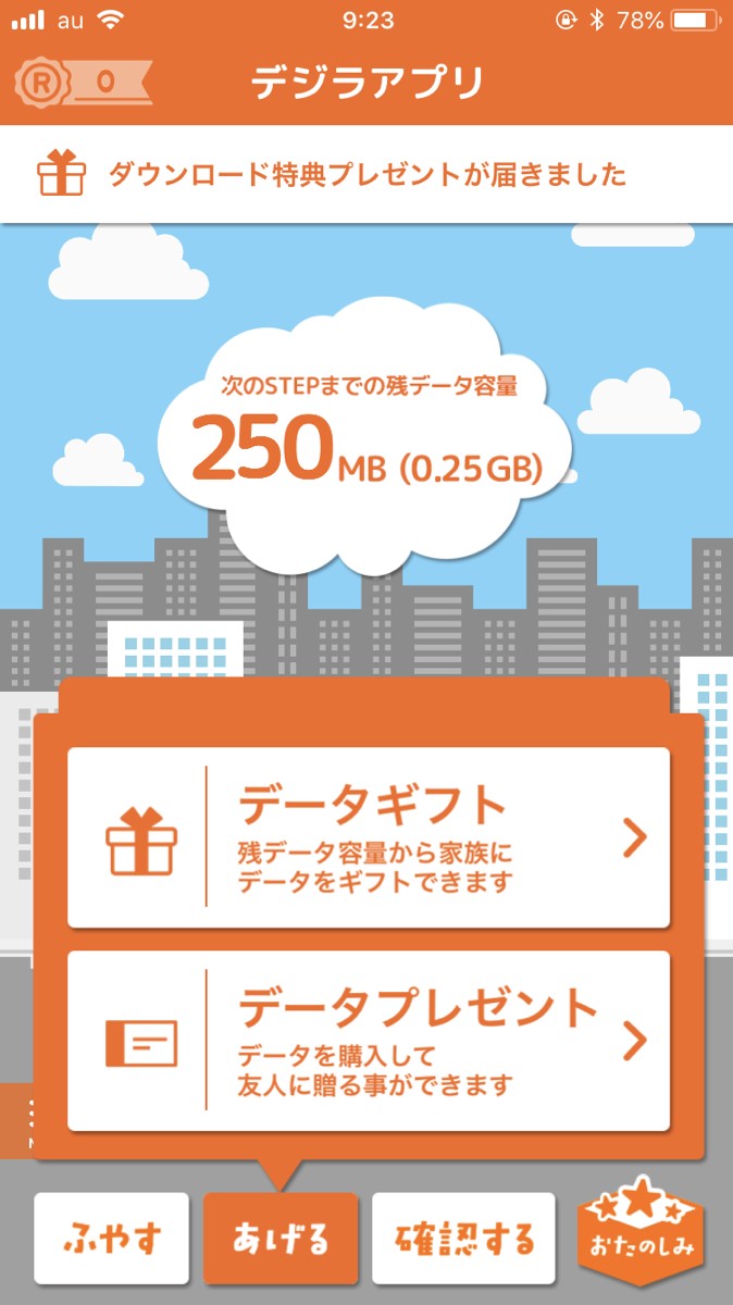 月の途中でデータの通信量を使い切ってしまい、ギフトやプレゼントを受けることもできないといった場合には、「デジラアプリ」を使ってデータをチャージすることができます。チャージ機能を利用する際は無料ですが、別途データの料金が発生します。データは、必要に応じて0.5GBもしくは1GBから購入可能。チャージ回数に制限はないので、再び使い切ってしまった場合は追加で購入することができます。少しずつ購入することによって、無駄なくデータを使用できるので試してみましょう。