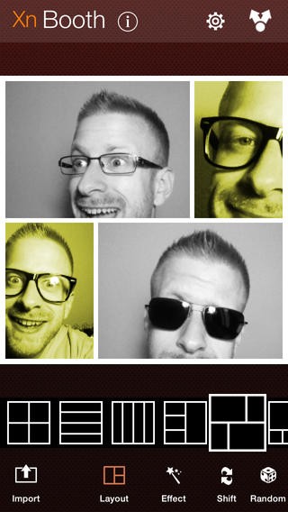 「XnBooth Pro」は、手軽におしゃれなコラージュ写真ができることが魅力です。その場で撮った写真やカメラロールから選べるのはもちろん、フェイスブックやIインスタグラムにすでにアップしている写真を使用することもできるので、いろんな画像から選択できます。一度、他の画像加工アプリで加工して、SNSにアップした写真がまた加工できるので、素敵な写真ができそうですね。レイアウトは15種類、効果は12種類の中から選択するようになっています。「Shift」を使って写真の配置が変えられるだけでなく、「Random」でレイアウトと効果をランダムに組み合わせて楽しむこともできます。すべて選択していくだけなので難しい操作が一切なく、機械の操作が苦手な人、画像の加工で失敗してしまう人でも使いやすいのがポイントです。