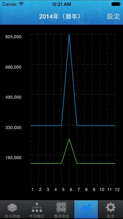 暦年集計機能は、1月から12月までが集計されます。収入から差し引かれる税金や社会保険料などの計算をする時の集計単位です。
