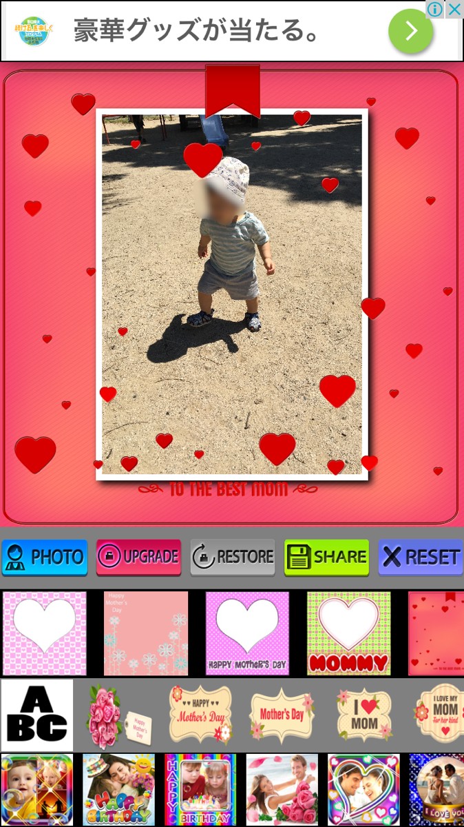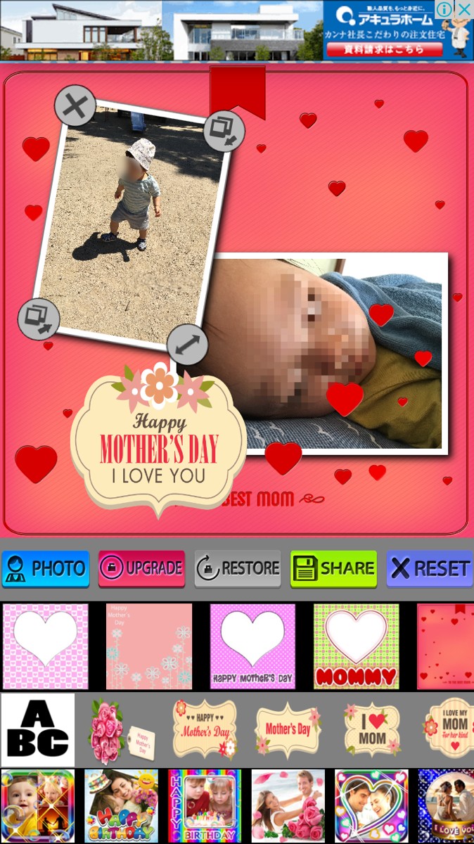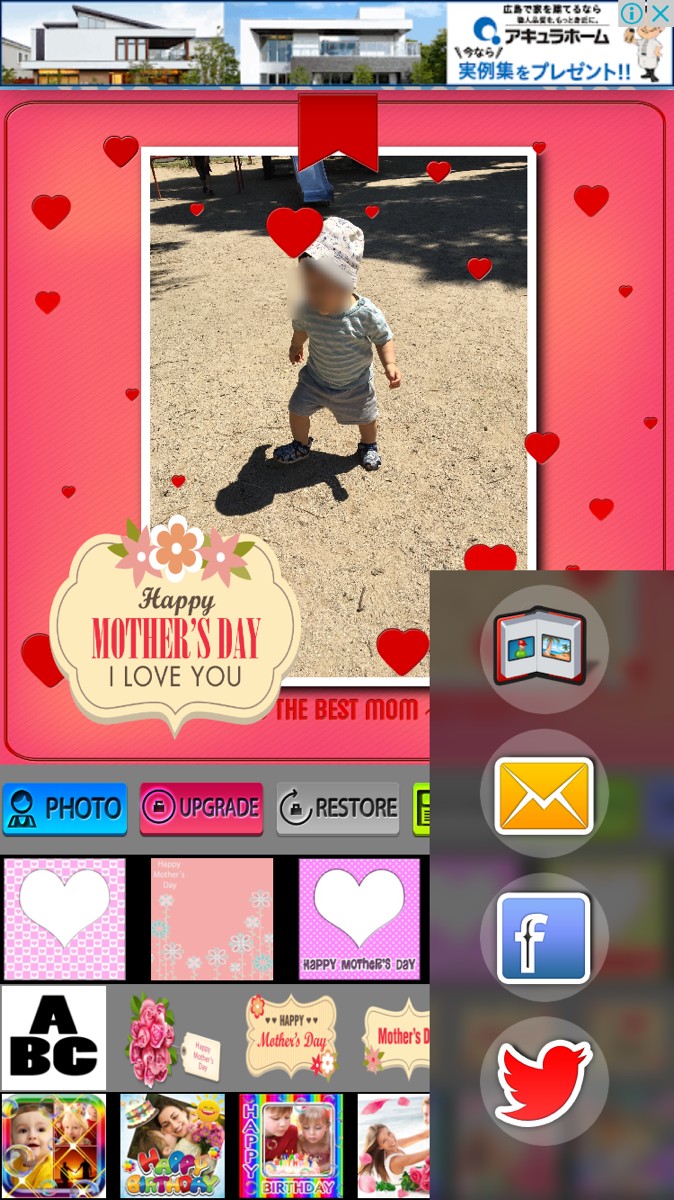 1. 「Happy Mother's Day Greeting Cards」写真をフレームとスタンプで可愛く飾りつけ♪