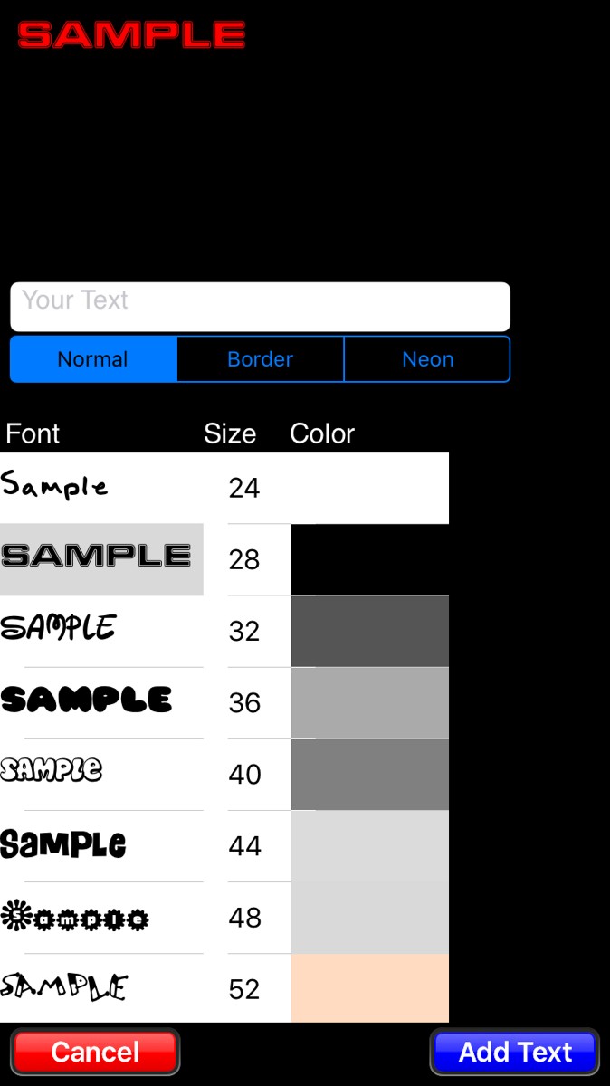 このアプリの基本的な使い方についてご紹介します。アプリを起動したら、画面左側にある「PHOTO」をタップして、カメラロールから写真を選択します。選択した写真は、フレームの上に配置されます。この写真の位置は、指でドラッグして自由に変えることが可能です。写真をタップすれば、傾きや大きさも変更できます。写真の配置が決まったら、次にフレームとスタンプを選びます。画面の下部に並んでいる中から、横にスクロールして好きなものを選んでください。スタンプ一覧にある「ABC」のアイコンを選ぶと、テキスト入力ができるようになります。アプリ自体は英語ですが、テキスト入力では日本語も対応しています。フォントや色も選べるところも嬉しい機能ですね。編集が完了したら、「SHARE」をタップしましょう。ここからはカメラロールへの保存、メール送信、SNS投稿ができます。操作もシンプルで、アプリを使って初めてカードを作る人でも安心ですね。
