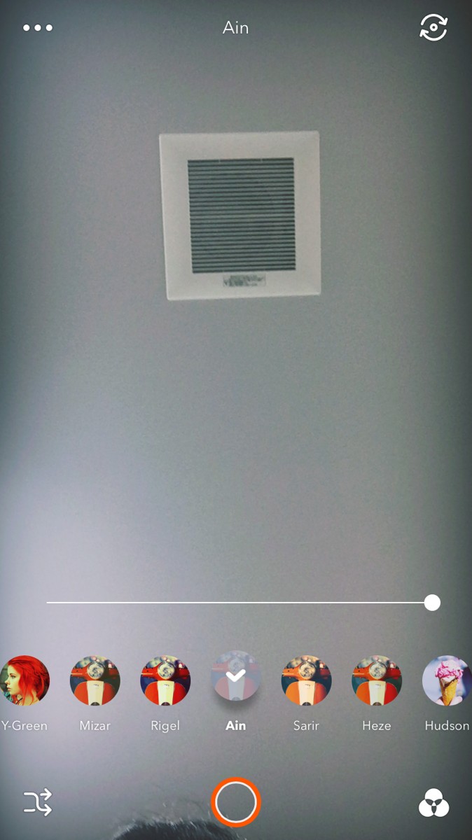 アプリが起動すると自撮りモードになります。フィルタの変更は画面右下のマークをタップすることで変更ができます。明るさの調整もできるので、お好みの明るさに調整しましょう。