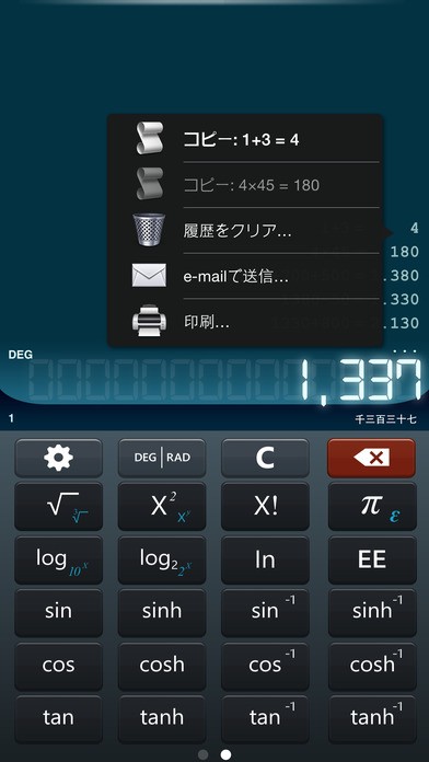 「電卓 HD+ Pro」には計算に直接関わる機能の他にも、計算結果のコピーやプリントアウト、メールでの履歴共有や右利き左利きの切り替えなどといったサポート機能がそろっています。さまざまな機能を活用して、自分の生活にぴったりと合ったアプリの使い方を探してみてください。