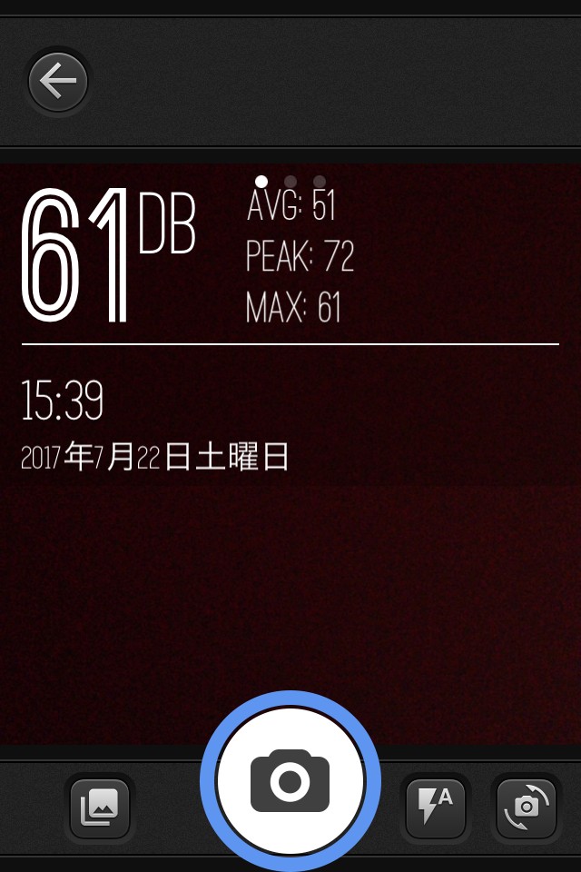 「Decibel 10」は、スマホのカメラにアクセスして計測データを写真に記録することができます。実際に写真を撮った場所がこれくらいの音量だったとひと目でわかるため、後から写真を参考資料として利用することも可能ですね。