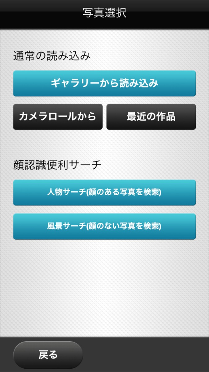 2.カメラロールから選択する場合は人物と風景サーチをタップすると、自動で検索してくれます