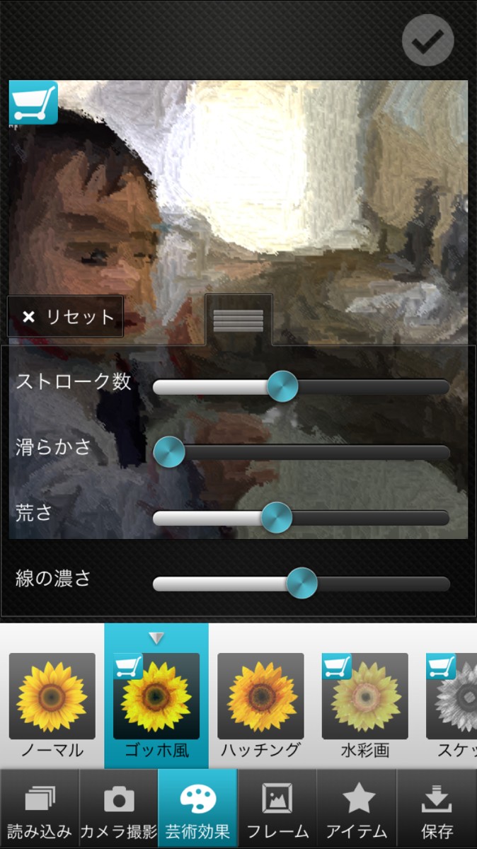 4.芸術効果をした後、線の濃さや滑らかさなど、細かな調節をします