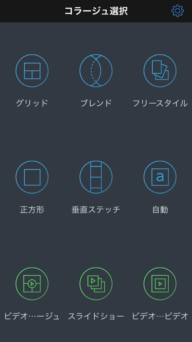 画像だけでも6つのメニューがあり、不思議な仕上がりになる「ブレンド」や画像の配置をランダムで設定してくれる「自動」などの機能が選べます。