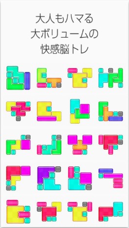 ステージを進めると新しいレベルをアンロックすることができます。全部で1200ものステージが用意され、やりごたえは抜群。ゼリーのようなぷるぷるのブロックをはめ込んでいくのが気持ち良く、穏やかなBGMが流れる中、リラックスしてプレイすることができます。徐々にブロックの種類が増えていくのはもちろん、フィールドの形もどんどん複雑になっていきますから、頭を柔軟に働かせ、より難しいステージへと進んでいってくださいね。通勤や通学などのちょっとした時間にも最適です。
