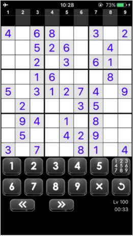 仮置きモードやチェックシート機能が搭載されているのでとてもゲームがしやすく、間違えて入力してしまった数字は簡単に訂正することができるので、ストレスを感じることがありません。レベルを自由に選ぶことが可能なので、初めてナンプレをする方でも安心して挑戦することができるでしょう。慣れてくればハマること必至。たくさんの問題を解いて、Lv999を目指しちゃいましょう。