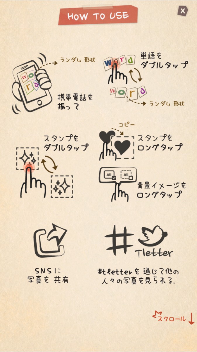 以上が「Threat Letter Lite - 可愛い手紙」の基本操作になります。複雑な作業はないので、あっという間に加工できました!もしも作業中に使用方法が分からなくなったら、「info」ボタンを押すと詳しい説明が表示されるので安心してくださいね!