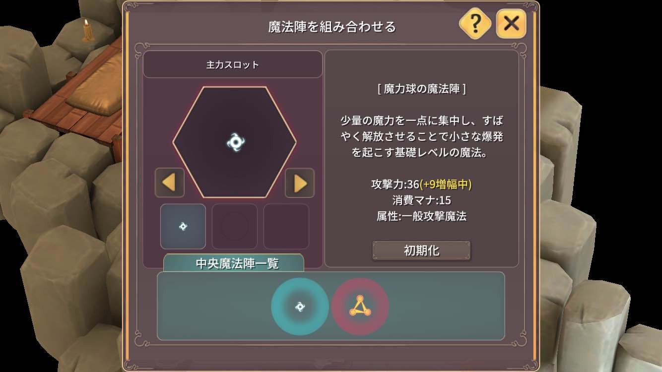 使える魔法が増えたら、好みの配置(魔法陣を組み合わせる)にします。