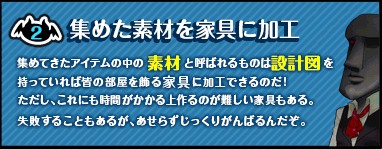 この「設計図」を利用する事によって、お部屋を彩る家具を増やしていけます!