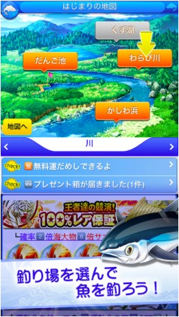 『釣りスタ 本格釣りゲーム 数百種類の川と海の魚をフィッシング』をはじめるには、GREEへの登録が必要になります。ゲームを起動させたら、釣り場を選んで早速魚を釣っていきましょう。
